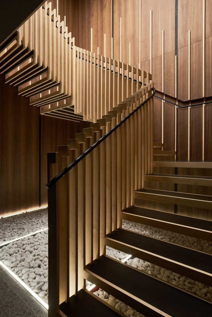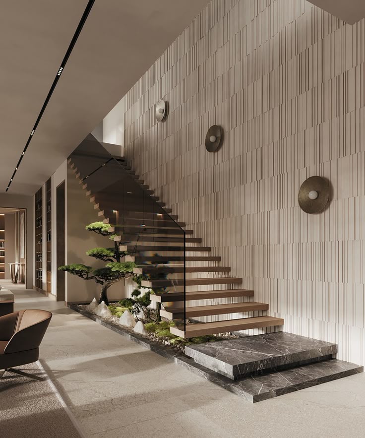 - Paredes de Acabado Natural: Para un ambiente de armonía natural, combina las escaleras de bambú con paredes de acabado rústico o de piedra. Esto proporciona una sensación de unidad entre la arquitectura y los materiales.