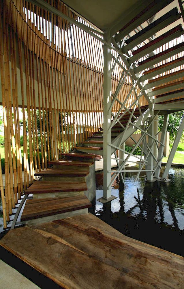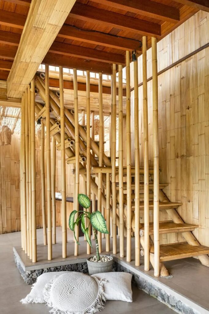 - Escaleras en Espiral: Las escaleras de bambú en espiral son ideales para ahorrar espacio en áreas más pequeñas. Ofrecen una estética única y una solución funcional para hogares compactos.