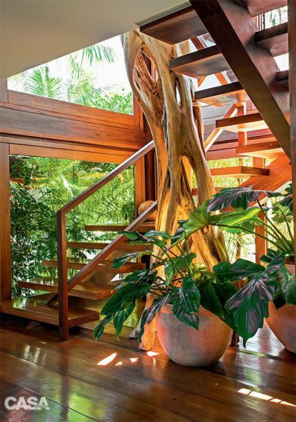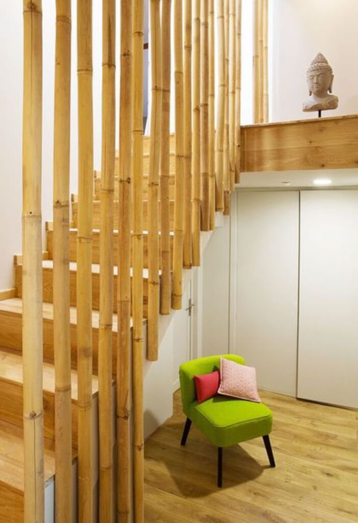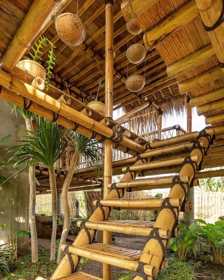 - Incorporando Plantas: Añadir plantas en macetas o en las paredes cercanas a las escaleras puede realzar la belleza natural del bambú. Las plantas verdes complementan el tono cálido del material y crean un ambiente relajante.